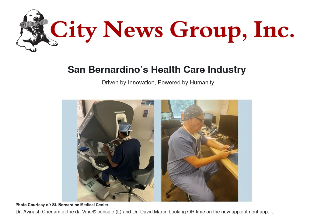 “We’re a center of excellence for robotic surgery,” said Doug Kleam, St. Bernardine Medical Center’s president. “For some surgeries, it can cut time in the hospital by half.”