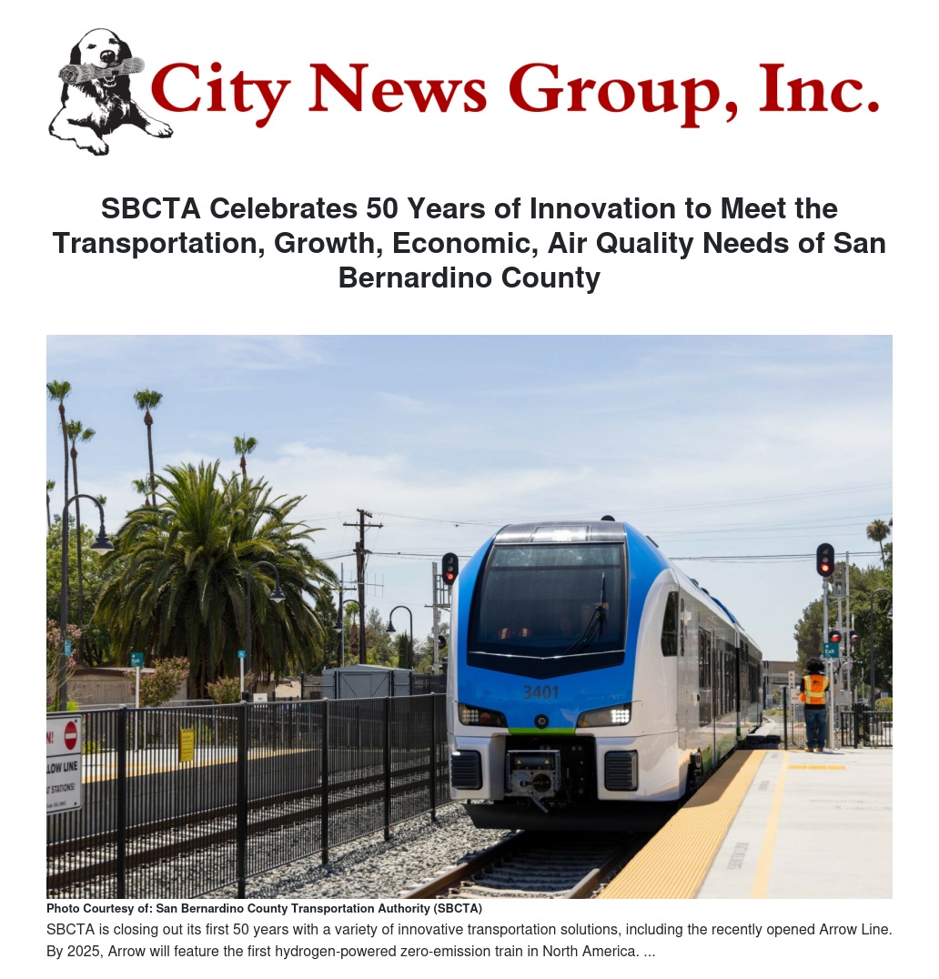 SBCTA Celebrates 50 Years of Innovation to Meet the Transportation, Growth, Economic, Air Quality Needs of San Bernardino County by Tim Watkins - City News Group, Inc.