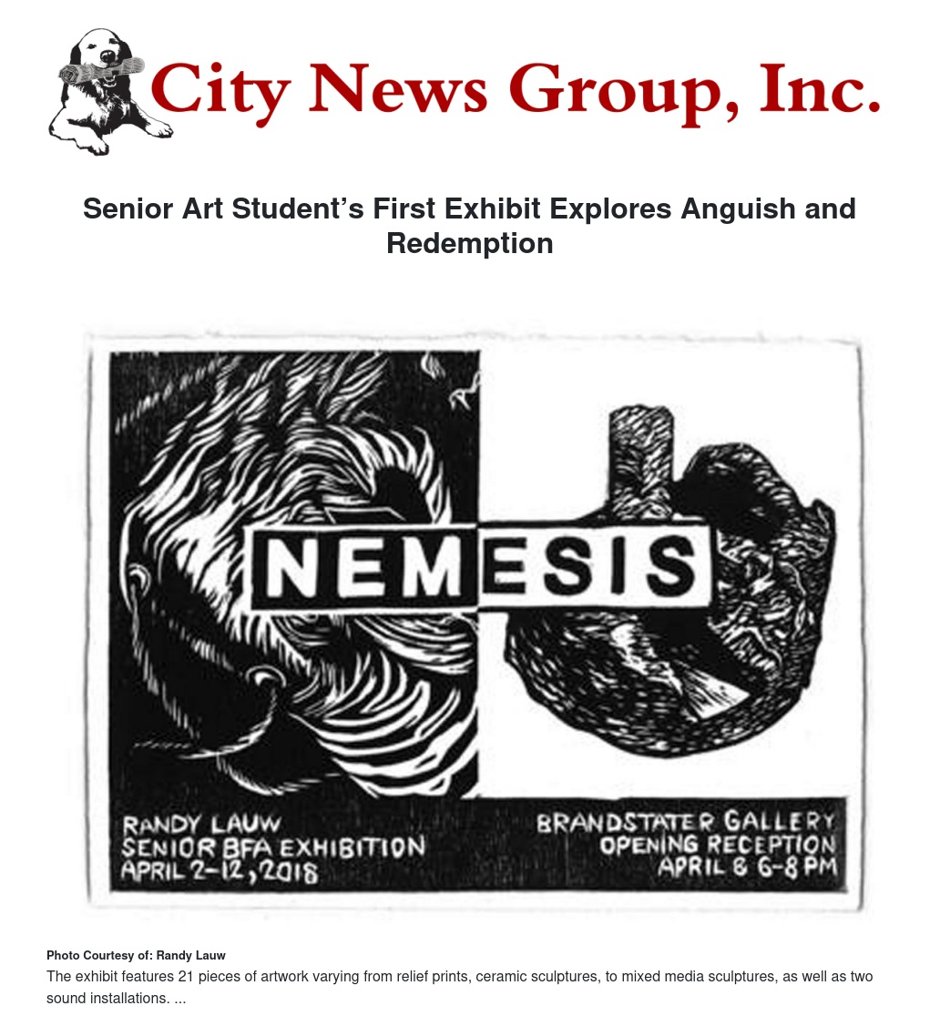 Lauw’s exhibit “Nemesis” will be open Monday, April 2 - Thursday, April 12 at La Sierra University’s Brandstater Gallery with an artist’s reception and talk at 6 p.m. on Sunday, April 8.