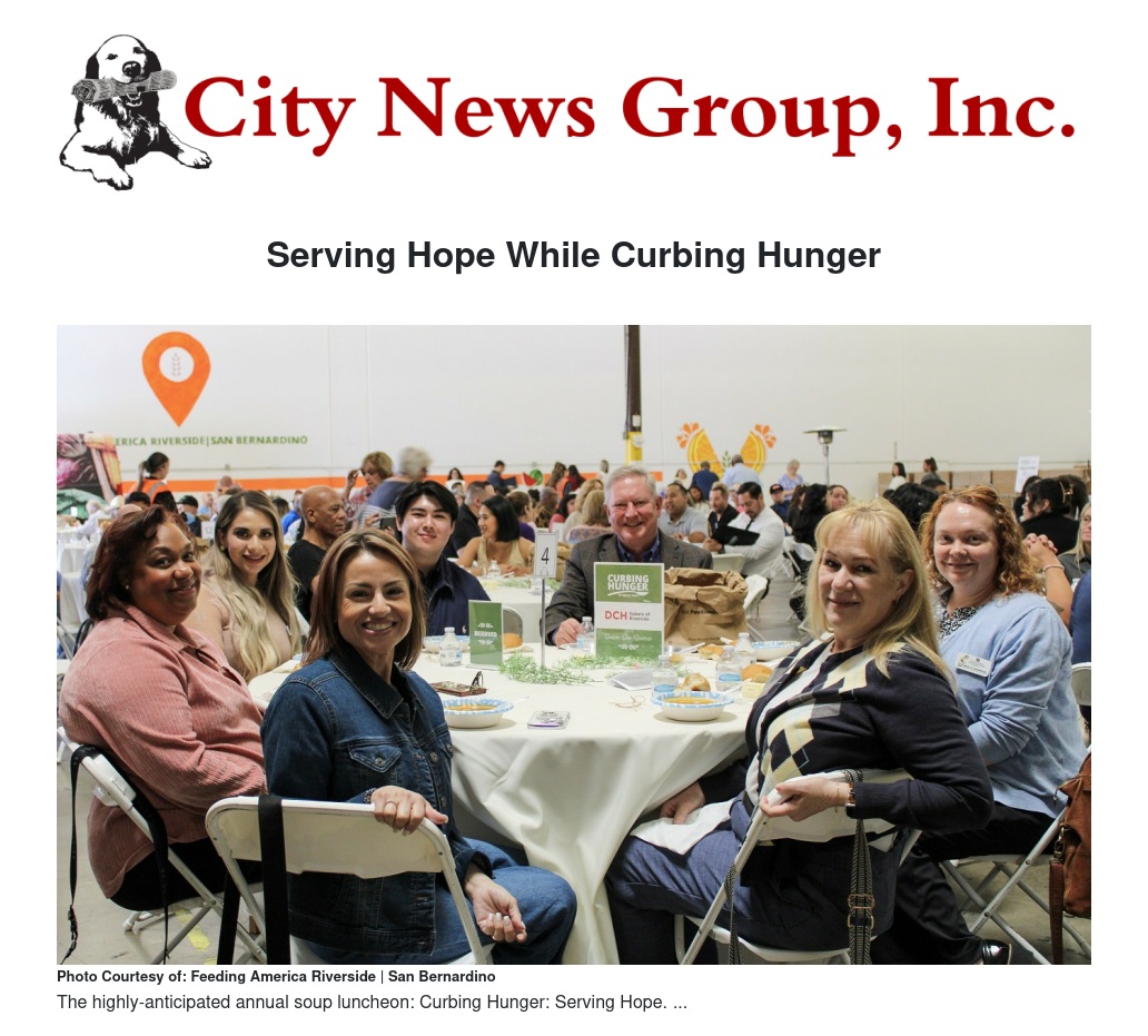 Feeding America Riverside | San Bernardino (FARSB) hosts highly-anticipated annual soup luncheon: Curbing Hunger: Serving Hope. This informative hour-long lunch showcases current initiatives and programs while offering the opportunity to engage with other hunger-relief advocates over a warm meal.