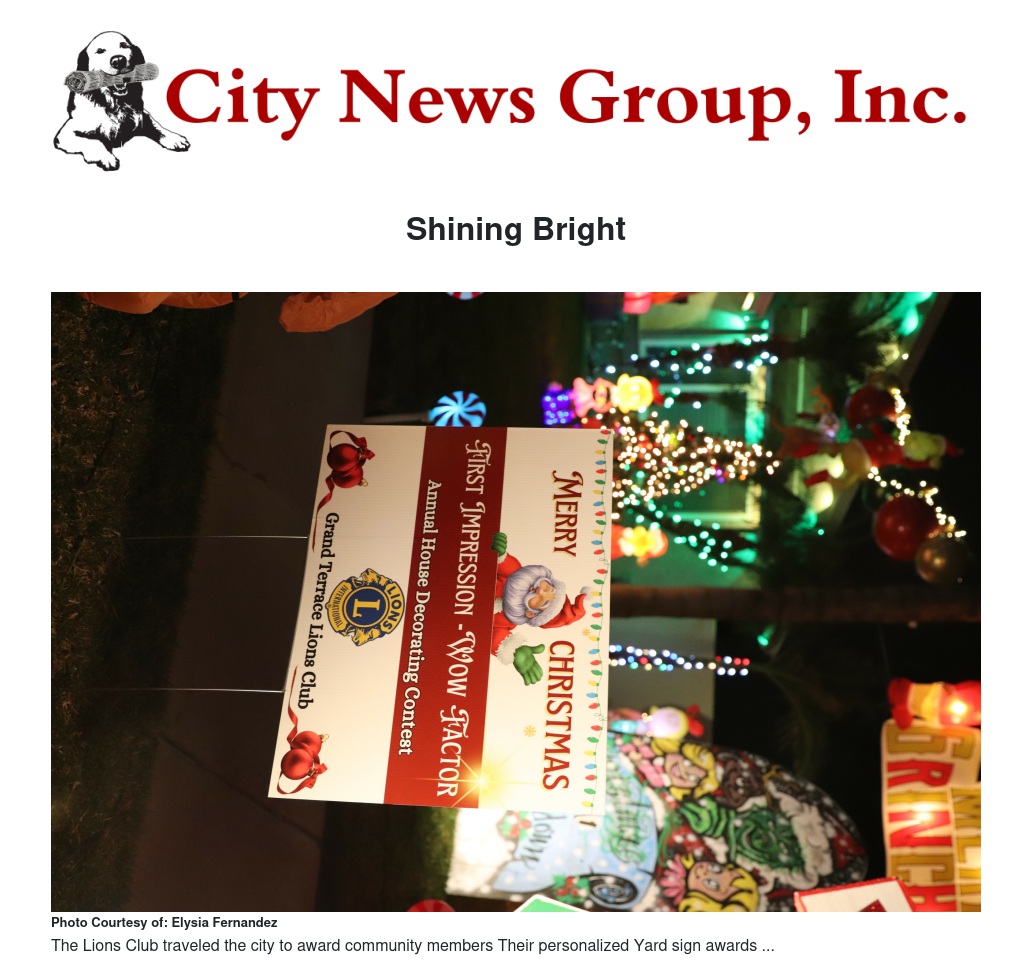 In a dazzling display of creativity and holiday cheer, the City of Grand Terrace recently held its annual Light Contest, organized by the dedicated Lions Club. This festive event encouraged residents to illuminate their homes and businesses, showcasing their holiday spirit and contributing to the community’s vibrant atmosphere.