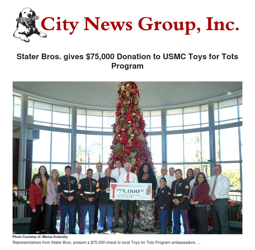 Stater Bros. gives $75,000 Donation to USMC Toys for Tots Program by Marisa Kutansky - City News Group, Inc.