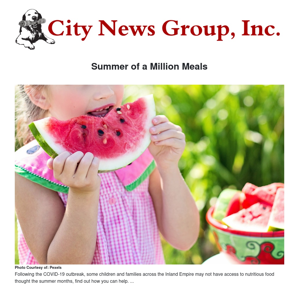 Feeding America Riverside | San Bernardino (FARSB), the regional food bank of the Inland Empire, has launched the first Summer of a Million Meals campaign following the COVID-19 outbreak, to ensure children and families across the Inland Empire can access nutritious food through the summer months.