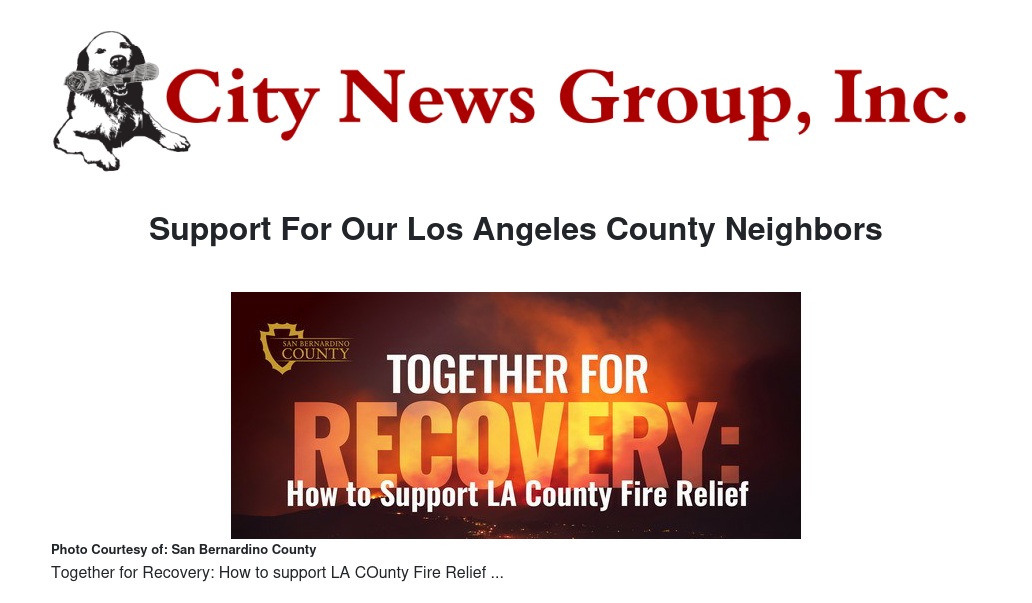 Support For Our Los Angeles County Neighbors by Ruby Stephenson - City News Group, Inc.