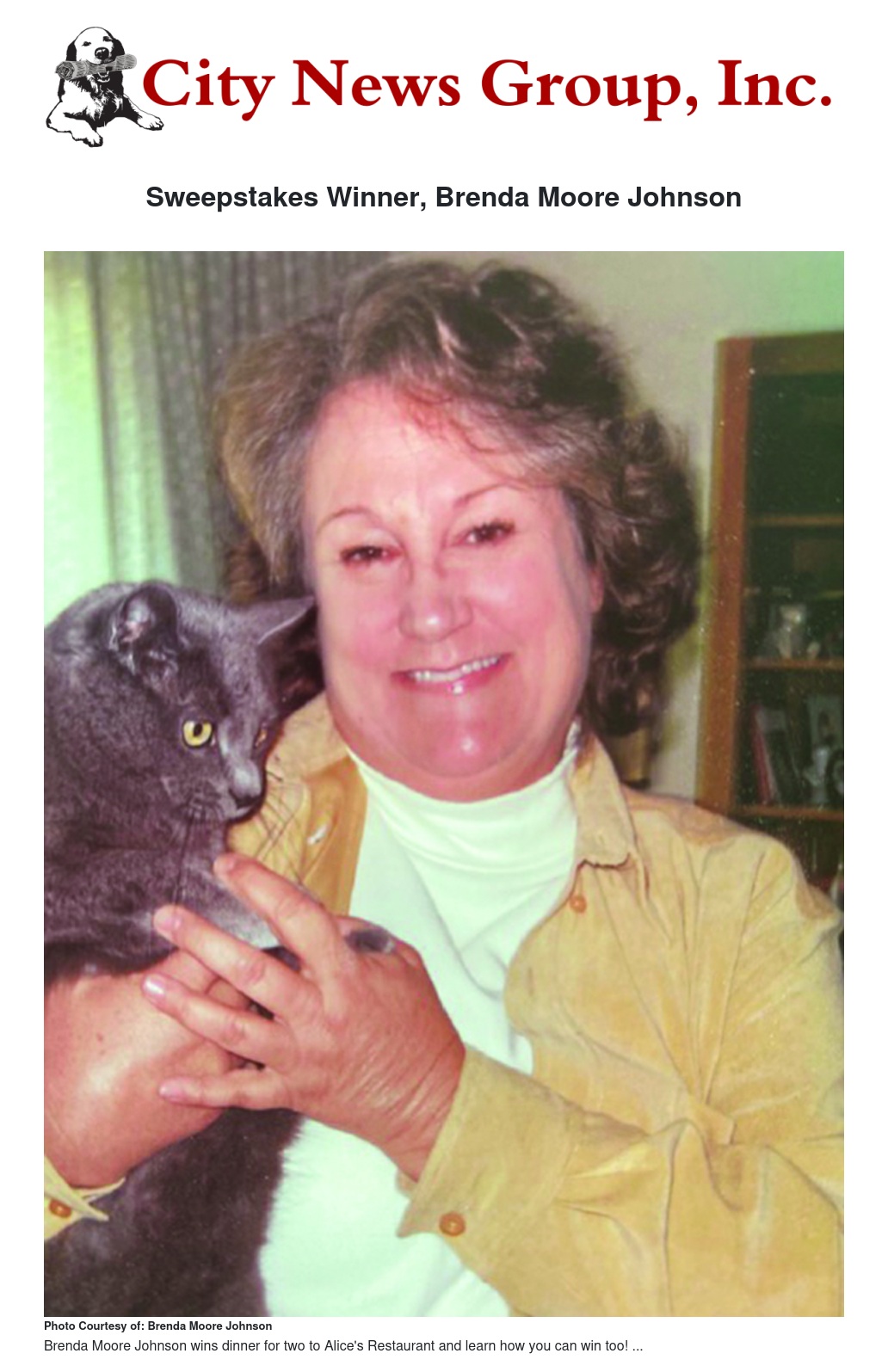 Sweepstakes Winner, Brenda Moore Johnson by City News Group - City News Group, Inc.