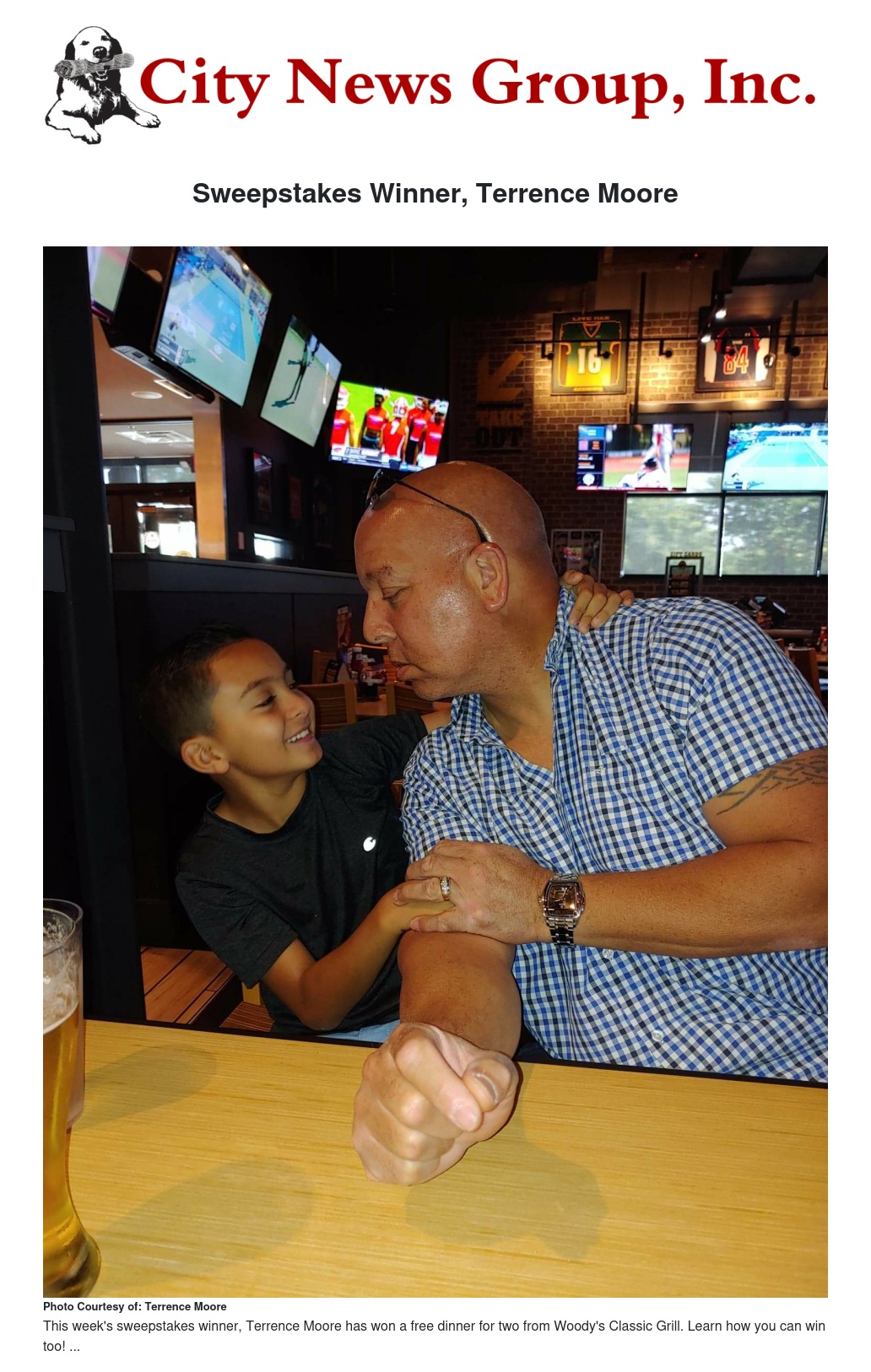 Woody’s Classic Grill was the first local business to giveaway a prize as a participator in the City News Group, Inc. Sweepstakes program, a program created to inform the community that their local businesses are still open.