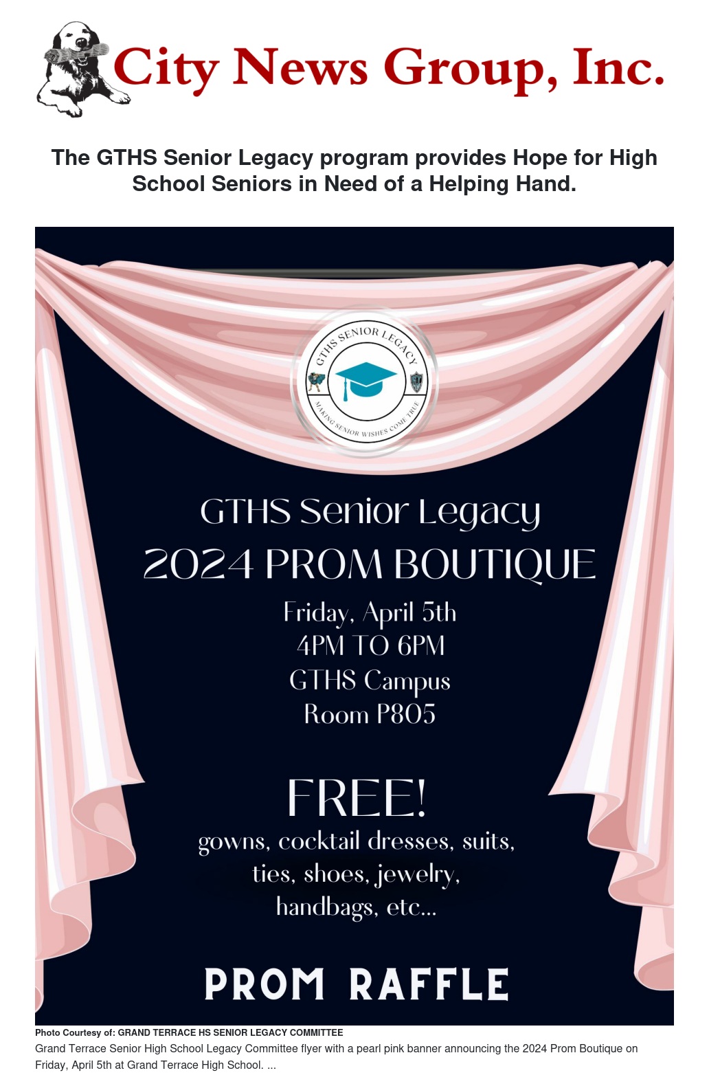 The Grand Terrace High School Senior Legacy program, a subcommittee of the Foundation for Youth, was established with the goal of ensuring that all high school seniors in Grand Terrace have the opportunity to participate in memorable senior events, regardless of their financial or personal circumstances. These events are often expensive, and many students face hardships that make it difficult to afford such experiences.