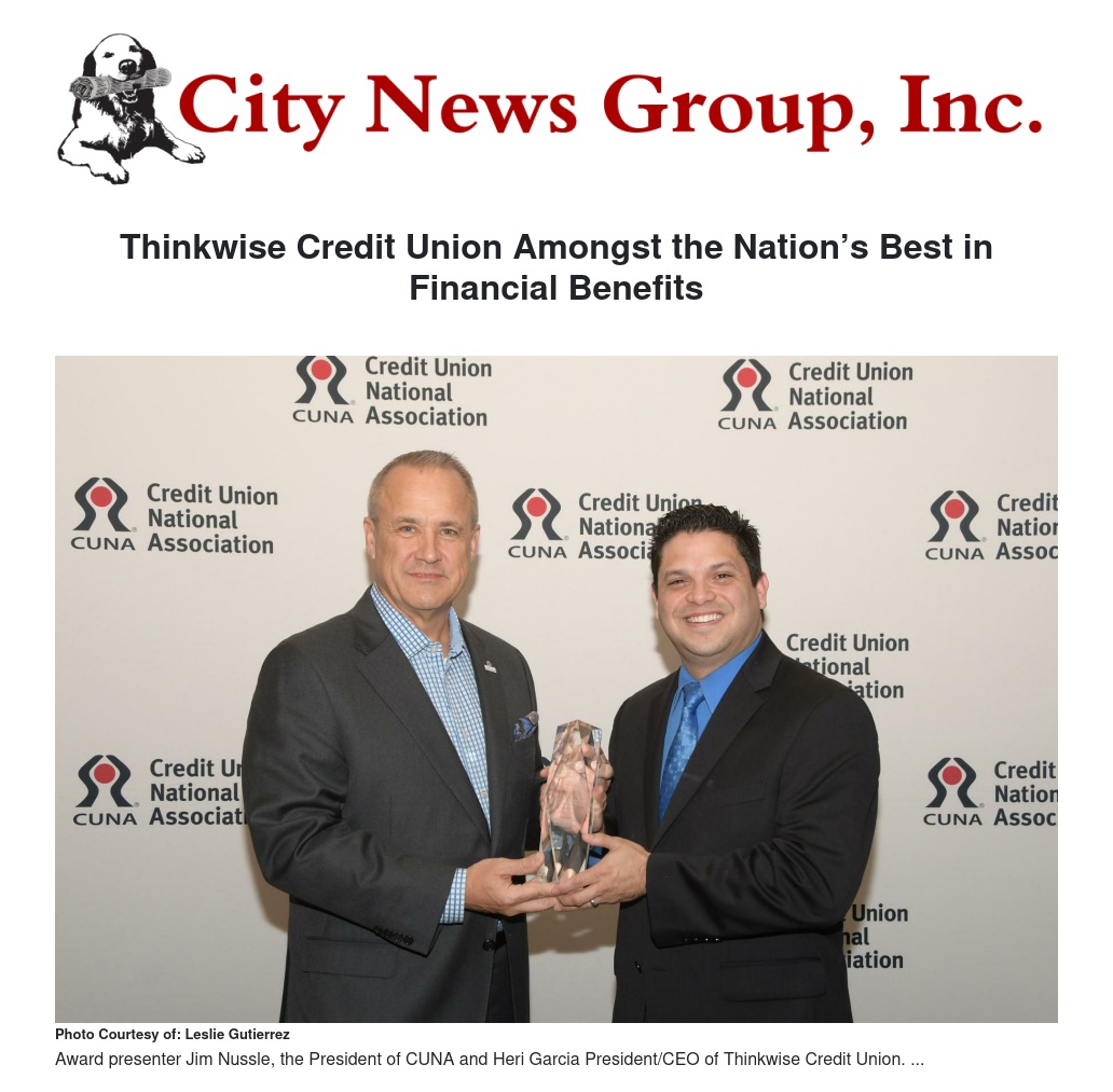 Thinkwise Credit Union Amongst the Nation’s Best in Financial Benefits by Leslie Gutierrez - City News Group, Inc.