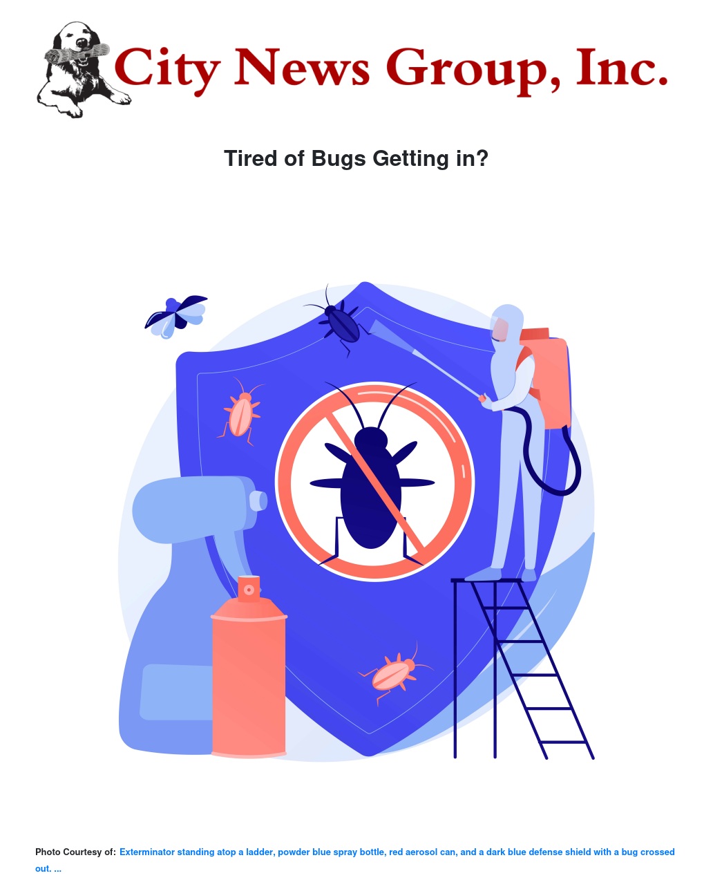- Install or repair screens on windows and doors to prevent bugs from entering your home.