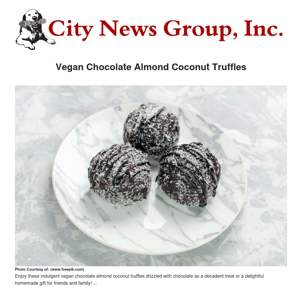 Vegan Chocolate Almond Coconut Truffles by Eleanor Davis - City News Group, Inc.