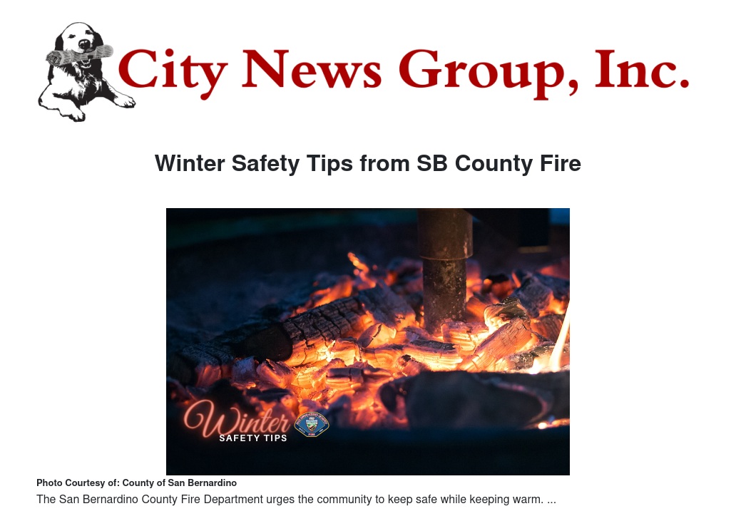 Winter Safety Tips from SB County Fire by County of San Bernardino - City News Group, Inc.