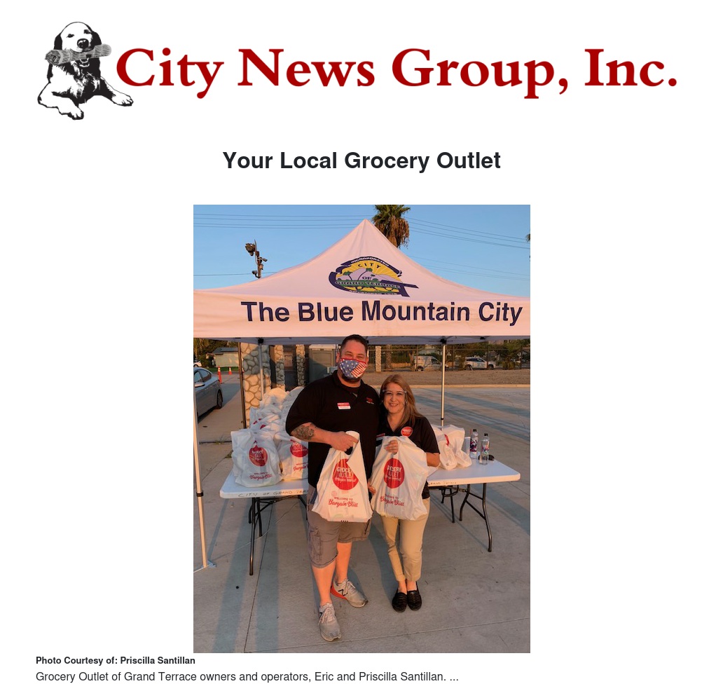 Grocery Outlet Bargain Market is an extreme-value grocery retailer dedicated to bringing big savings on name brands and high-quality merchandise to the city of Grand Terrace. It is operated by residents, Eric and Priscilla Santillan, who have deep roots in Grand Terrace and have five generations of family in the area. Opening in 2020, the store will be celebrating its three-year anniversary on February 20.