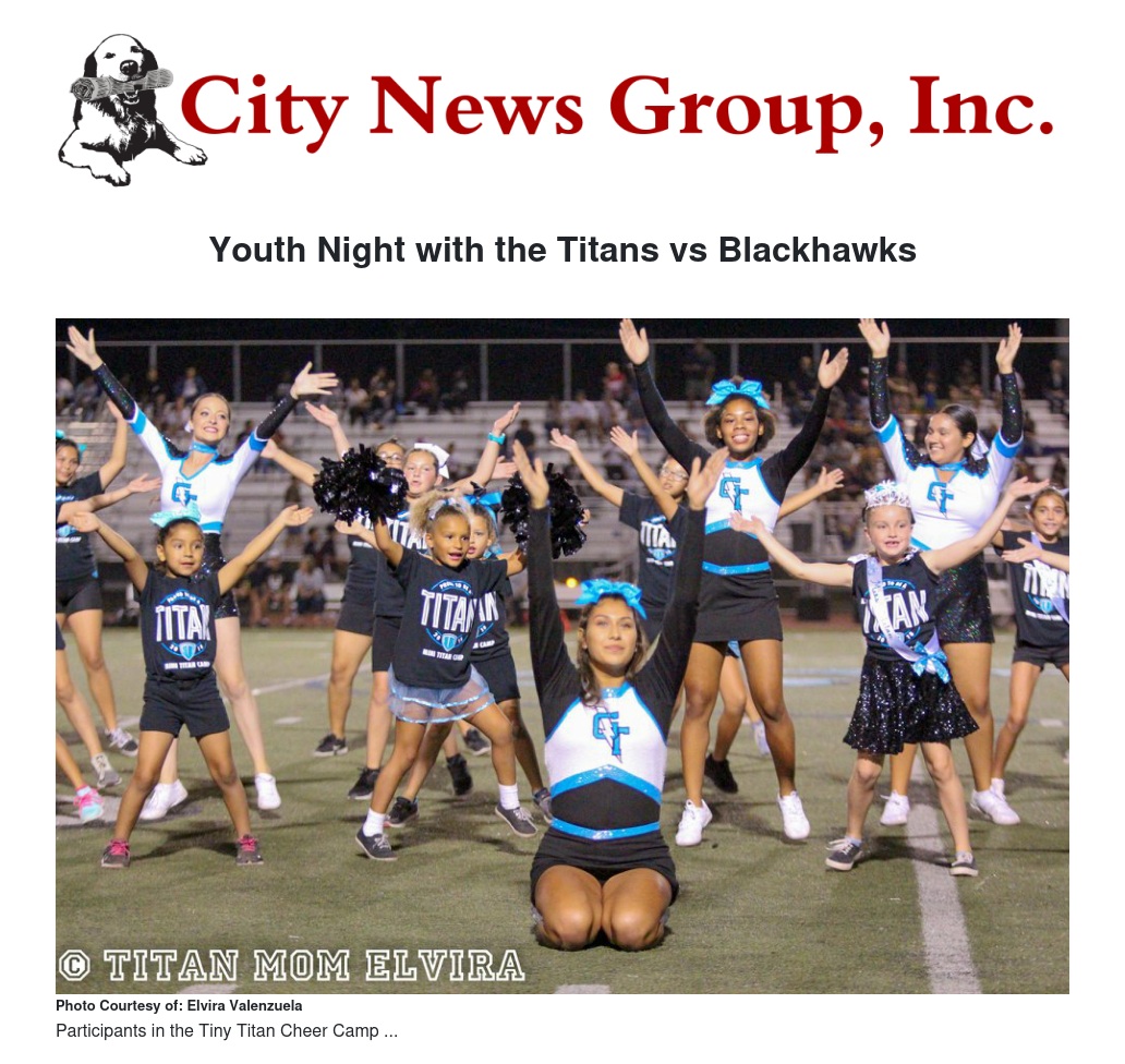 This was a special night for Grand Terrace as it was celebrating Youth Night with the youth football and cheer organizations in attendance along with the Tiny Titan Cheer Camp.